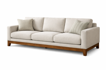 Built from durable hardwood and upholstered in soft, neutral fabric, it offers a spacious three-seater design perfect for family living rooms or cozy lounges.